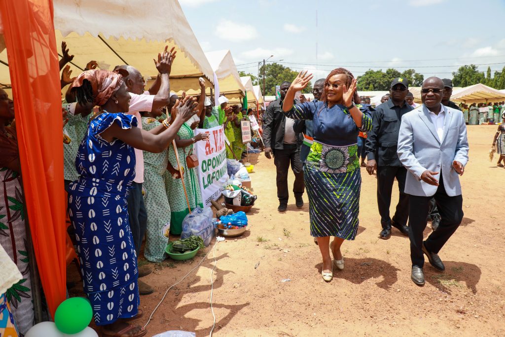 Ce Samedi 18 Avril 2026, à Katiola, place HKB, la Ministre de la Solidarité, de la Cohésion Nationale et de la Lutte contre la Pauvreté, Mme Myss Belmonde Dogo, a procédé au lancement du paiement des subventions de sortie au profit de 100 000 ménages bénéficiaires en fin de cycle, en présence du Ministre Ibrahim Kalil Konaté, Ministre du Commerce, de l’Industrie et de l’Artisanat, représentant le Vice-Président de la République, Monsieur Tiémoko Meyliet Koné, Patron de la cérémonie.